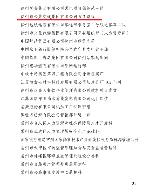 4月28日下午,江蘇省總工會發(fā)布關(guān)于表彰2022年省五一勞動獎和省工人先鋒號的決定,徐州交控公交集團613路線獲得“江蘇省工人先鋒號”殊榮。