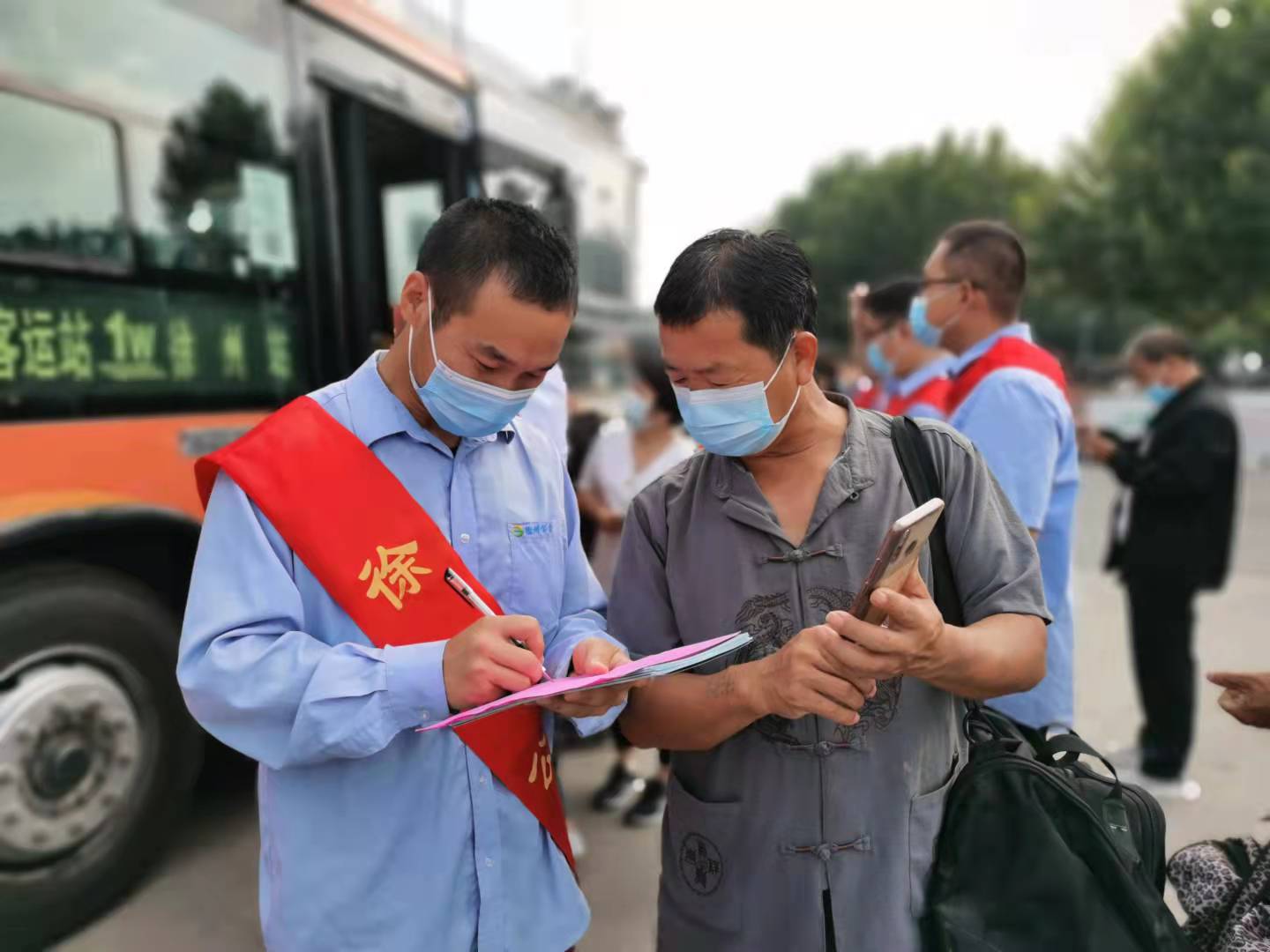 在活動(dòng)現(xiàn)場(chǎng),志愿者們積極行動(dòng),一邊引導(dǎo)車輛規(guī)范進(jìn)站,一邊疏導(dǎo)乘客有序上下車,解答乘客提問(wèn),并幫助乘客調(diào)取“健康碼”及“行程碼”,方便市民乘車。