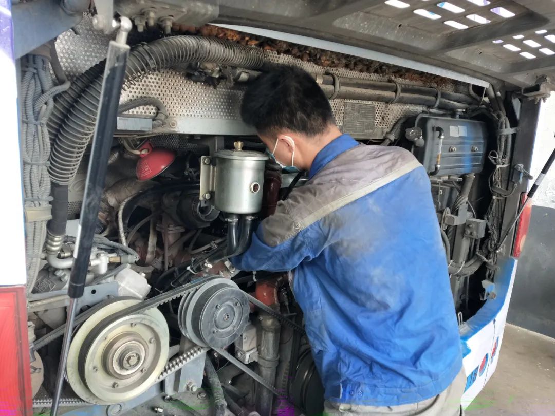 今年“五一”期間,是此次疫情以來復工復產(chǎn)及市民出行的高峰期,為做好車輛運營安全保障工作,金通汽車修理有限公司各車間的修理工們?nèi)詧允貚徫弧?月30日上午,五一假期的第一天,新城公司97路2007號車因動力不足,超氣,排氣支管固定螺絲斷裂5顆,增壓機懸浮軸承磨損嚴重導致竄機油等故障原因,需更換排氣支管墊和斷裂螺絲以及增壓機。正在值守的車間維修人員姜磊帶領班組成員張光輝和臧鈺經(jīng),立刻投入工作中,他們在車輛需要維修的發(fā)動機組件里穿梭著,把需要修理的零部件一一拆解下來。由于經(jīng)常在那狹小的空間里工作,取下零部件后屈卷著身體,經(jīng)常累得直不起腰,但是,他們從無怨言。