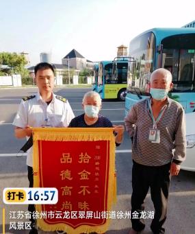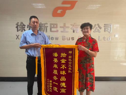 9月5日上午,市民楊女士專程來到徐州公交新巴士公司送上一面印有“拾金不昧品德高,潘要來服務一流”的錦旗,感謝徐州新巴士公司8路線駕駛員潘要來。