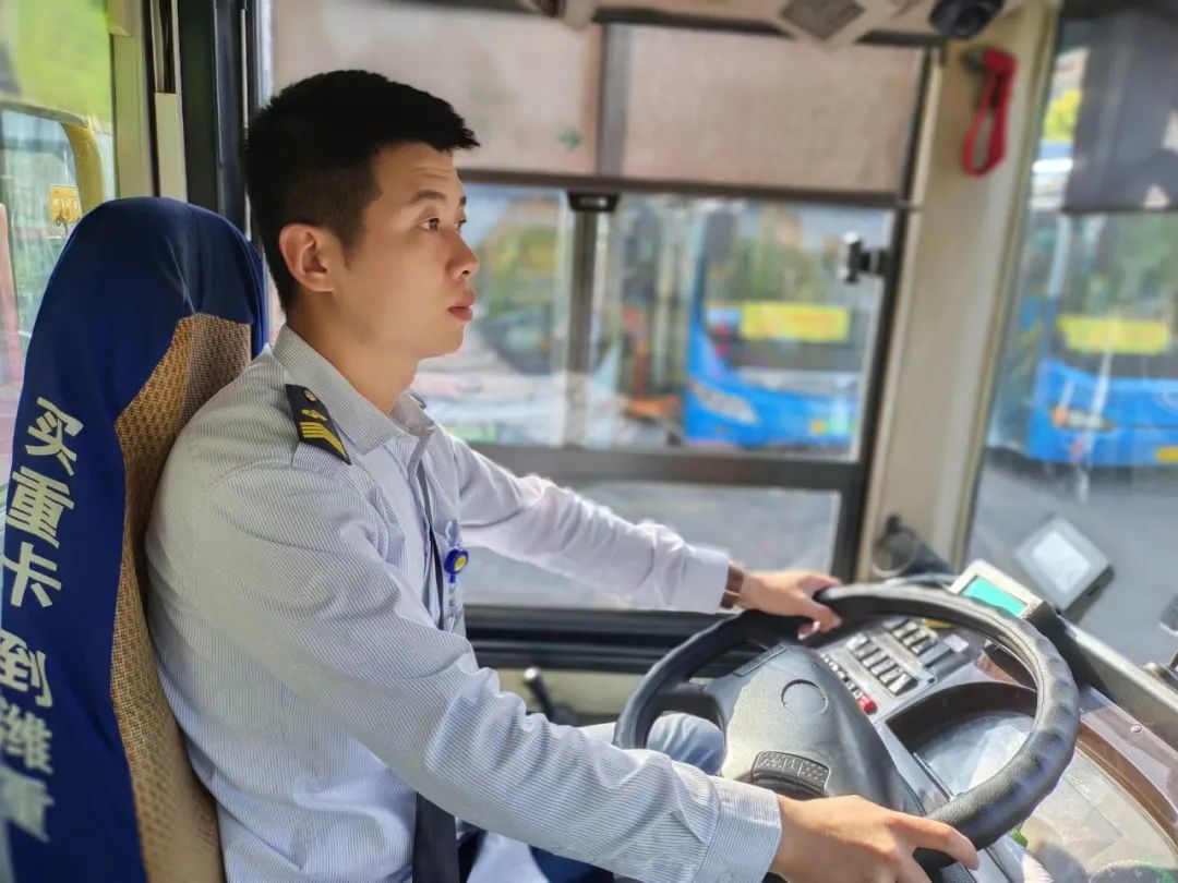 楊再心2020年5月份進(jìn)入徐州公交新巴士公司工作,別看他年齡小,干起活來(lái)一點(diǎn)也不馬虎,踏上他的車(chē)第一感覺(jué)就是干凈整潔,不論是出車(chē)前,還是收車(chē)后,他都會(huì)對(duì)車(chē)輛各個(gè)部件進(jìn)行檢查。國(guó)慶當(dāng)天早上5點(diǎn)50分,楊再心駕駛著2068號(hào)公交車(chē)從公交修造廠站緩緩駛出,這名90后公交駕駛員已是連續(xù)第二年在國(guó)慶假期放棄休息,堅(jiān)守崗位應(yīng)對(duì)國(guó)慶黃金周客流高峰。“請(qǐng)往后走,要關(guān)門(mén)了。”“注意扶好!”進(jìn)站前50米車(chē)提前減速,進(jìn)站停穩(wěn)后3秒再開(kāi)啟車(chē)門(mén),乘客落座站穩(wěn)扶好后觀察3秒再起步,楊再心嚴(yán)格按照公司要求行車(chē)。“安全駕駛車(chē)輛,把乘客送到目的地,是我們公交駕駛員的職責(zé)。”楊再心說(shuō)。