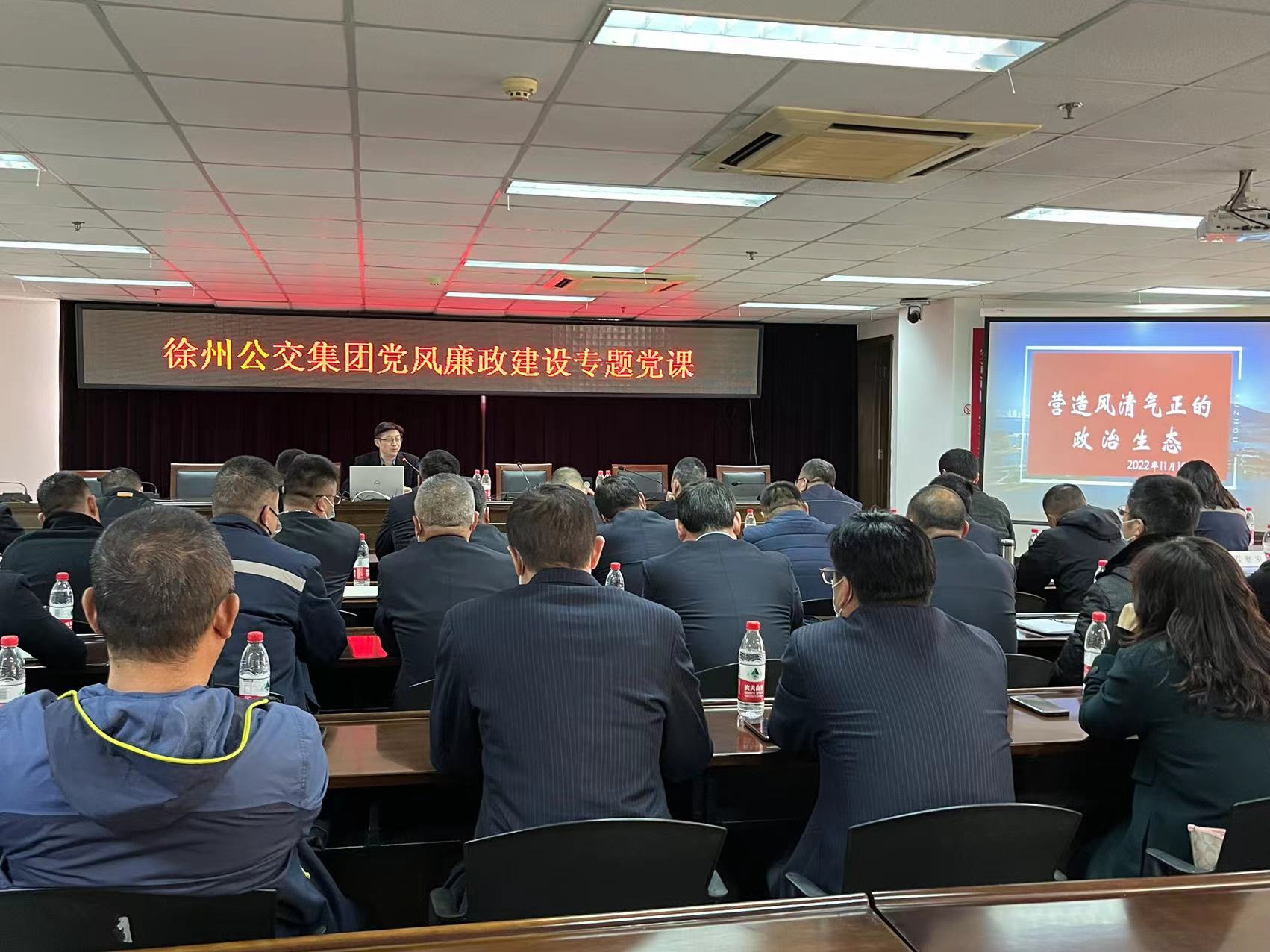 為深入學(xué)習(xí)貫徹落實黨的二十大精神,堅定不移推進全面從嚴(yán)治黨向縱深發(fā)展,營造集團風(fēng)清氣正的政治生態(tài),11月17日,徐州公交集團開展黨風(fēng)廉政建設(shè)專題黨課。公交集團黨委副書記、總經(jīng)理袁夫松主持會議,集團機關(guān)部室、基層單位負責(zé)人等50余人參加學(xué)習(xí)。