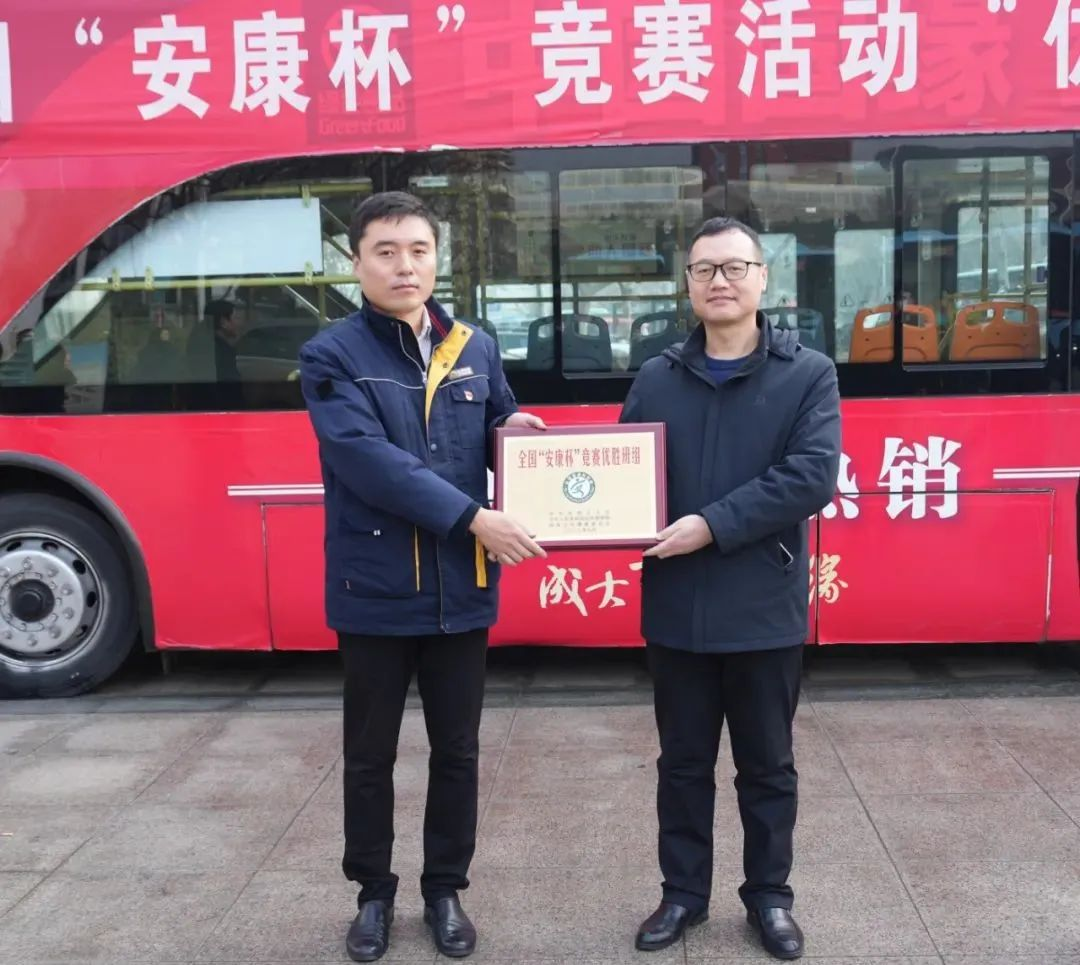 授牌儀式上,董雷對徐州公交集團(tuán)1路線獲得全國“安康杯”競賽優(yōu)勝班組稱號表示祝賀,希望受表彰的1路線全體工作人員要珍惜榮譽、再接再厲,立足新起點、創(chuàng)造新業(yè)績,讓“黨建引領(lǐng)職工安康”,在干部職工中落地生根。同時對徐州公交集團(tuán)始終以黨建為引領(lǐng),以作風(fēng)建設(shè)為抓手,以安全生產(chǎn)為基調(diào),把安全理念滲透到安全管理、技能比武、班組建設(shè)等各個領(lǐng)域,取得了較好的成績給予了肯定。他指出,此次授牌是深入貫徹落實習(xí)近平總書記關(guān)于安全生產(chǎn)系列重要指示,認(rèn)真落實省委省政府決策部署的具體行動,是貫徹落實省總工會開展全省“安康杯”競賽活動的重要舉措,徐州公交集團(tuán)能夠按照省、市總工會關(guān)于加強安全生產(chǎn)和職業(yè)病防治工作的決策部署,緊緊圍繞 “強意識,查隱患,促發(fā)展,保競賽”主題,積極開展的以職工安全健康教育培訓(xùn)、立足崗位查隱患、企業(yè)安全文化建設(shè)等為主要內(nèi)容的競賽活動,為促進(jìn)企業(yè)安全生產(chǎn)和職業(yè)病防治工作持續(xù)穩(wěn)定好轉(zhuǎn)作出了積極貢獻(xiàn)。