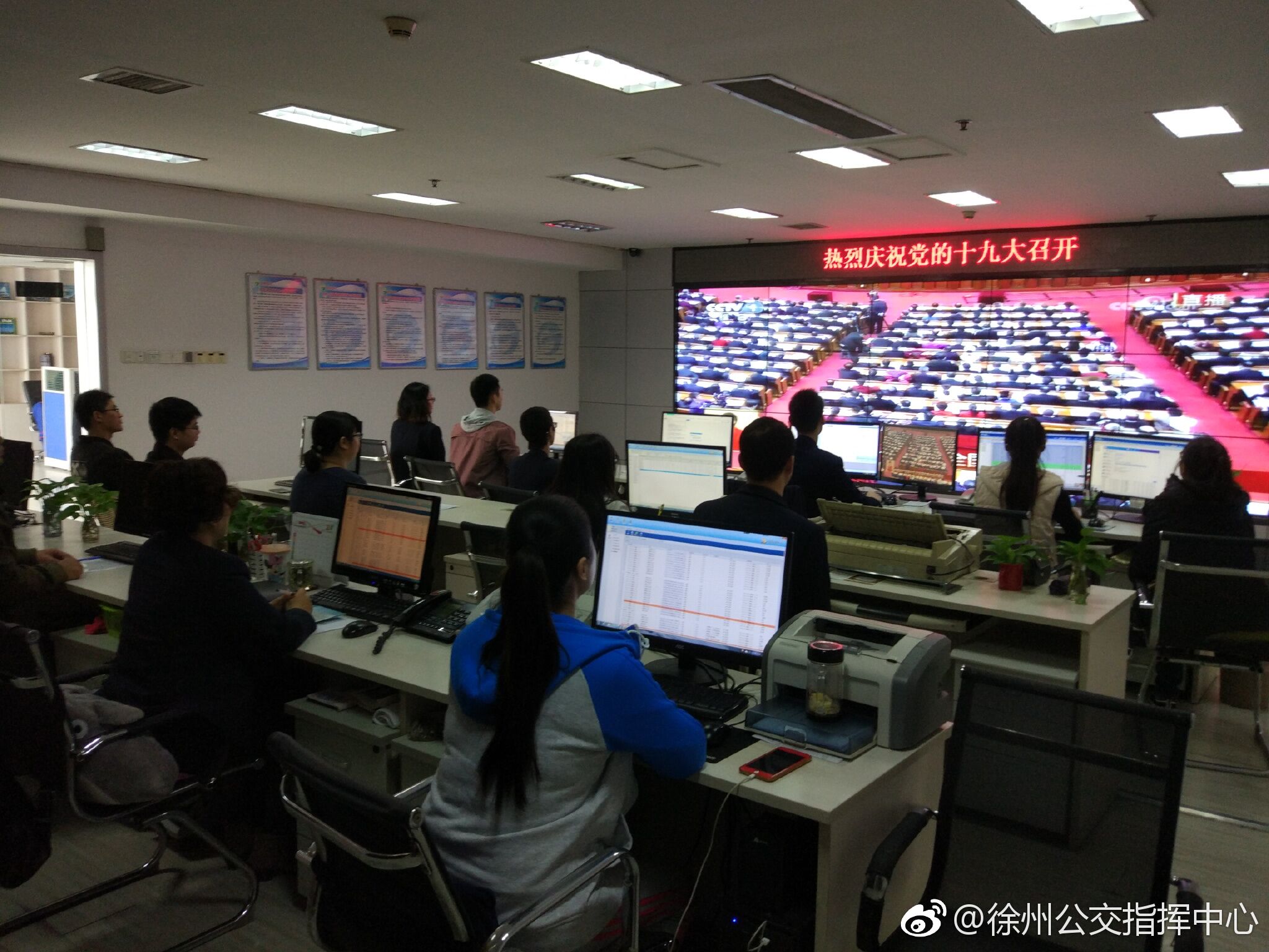 上午9點(diǎn),第十九次全國人民代表大會在雄壯激昂的國歌聲中拉開帷幕,公司機(jī)關(guān)、賈汪公司、中北公司、服務(wù)督導(dǎo)隊(duì)、智能調(diào)度中心等單位紛紛組織黨員、員工觀看了十九大開幕實(shí)況。