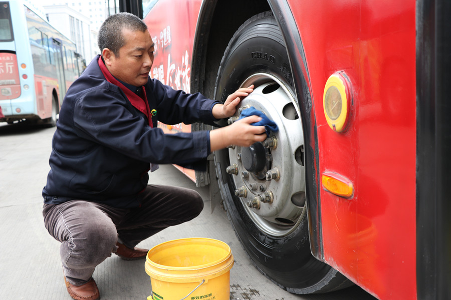 85路線經(jīng)過(guò)礦區(qū)路況差,一趟車(chē)下來(lái)車(chē)就很臟了,黨員祁保華把勞動(dòng)當(dāng)成一種樂(lè)趣,只要車(chē)輛停下來(lái),他就會(huì)拿起刷子,把車(chē)身從前到后刷上一遍,再用抹布細(xì)細(xì)擦,輪胎更是一趟一擦,一天8個(gè)來(lái)回,他就要擦8遍輪胎。晚上在文化宮跑夜班,都晚上9點(diǎn)了,他還借著微弱的路燈,里里外外把車(chē)打掃干凈。在他的帶動(dòng)下,85路線駕駛員由觀望到比賽,都成了車(chē)輛保潔的好手。
