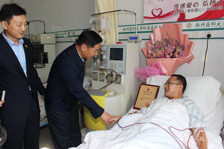 自7月底接到通知的這段時間,鄭剛一直積極配合著,希望保持最佳的身體狀態(tài)進行捐獻。他努力克制自己,戒煙戒酒,鍛煉身體,增加高營養(yǎng)的飲食調(diào)理。喝不慣牛奶的他甚至強迫著自己一天喝兩包奶。國慶節(jié)幾天,他突然感冒發(fā)低熱,竟忍著沒敢吃藥……鄭剛所在的單位也給予了大力的支持和配合,10月25日入院,徐州公交為他舉辦了隆重的歡送儀式,董事長、總經(jīng)理杜紅軍等領(lǐng)導給他送來了慰問金,安排好他的休息時間。