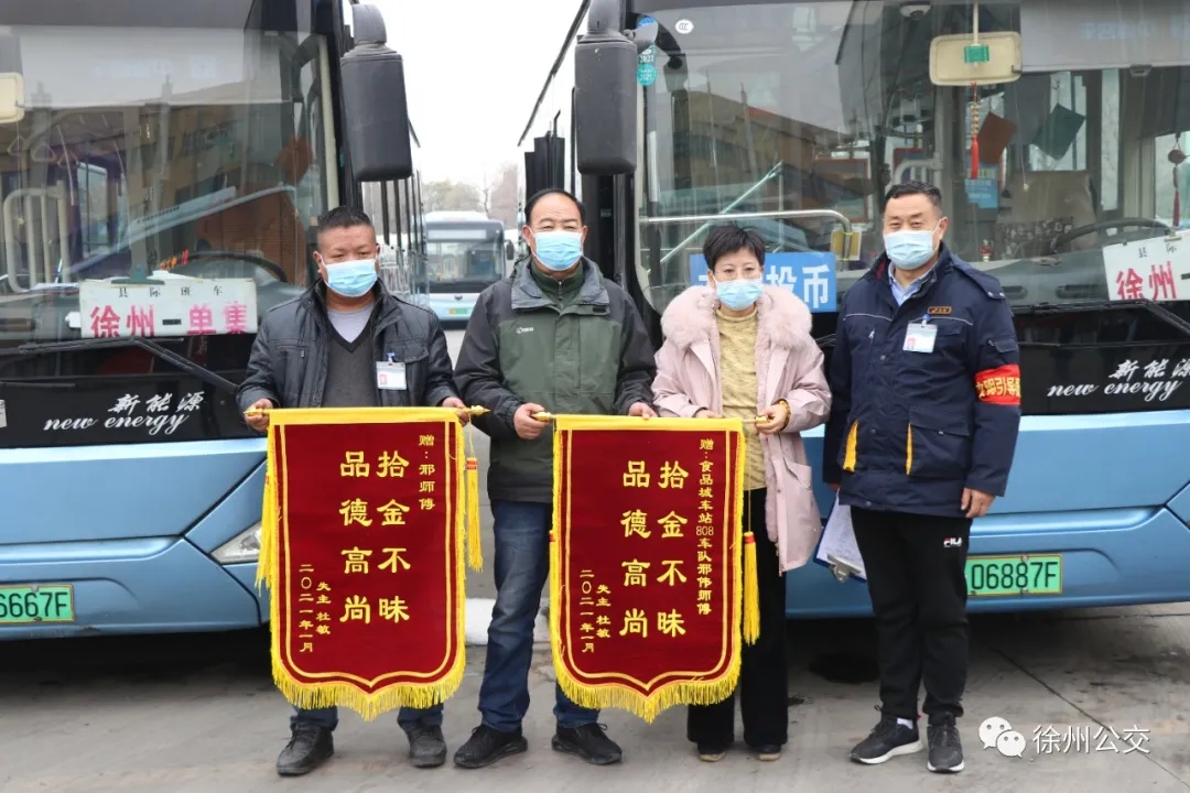 1月21日下午3時,一位女士拿著兩面錦旗來到淮海文博園公交樞紐調(diào)度室,感謝808路駕駛員邢偉師傅及車隊工作人員熱心幫助她尋找遺失物品。