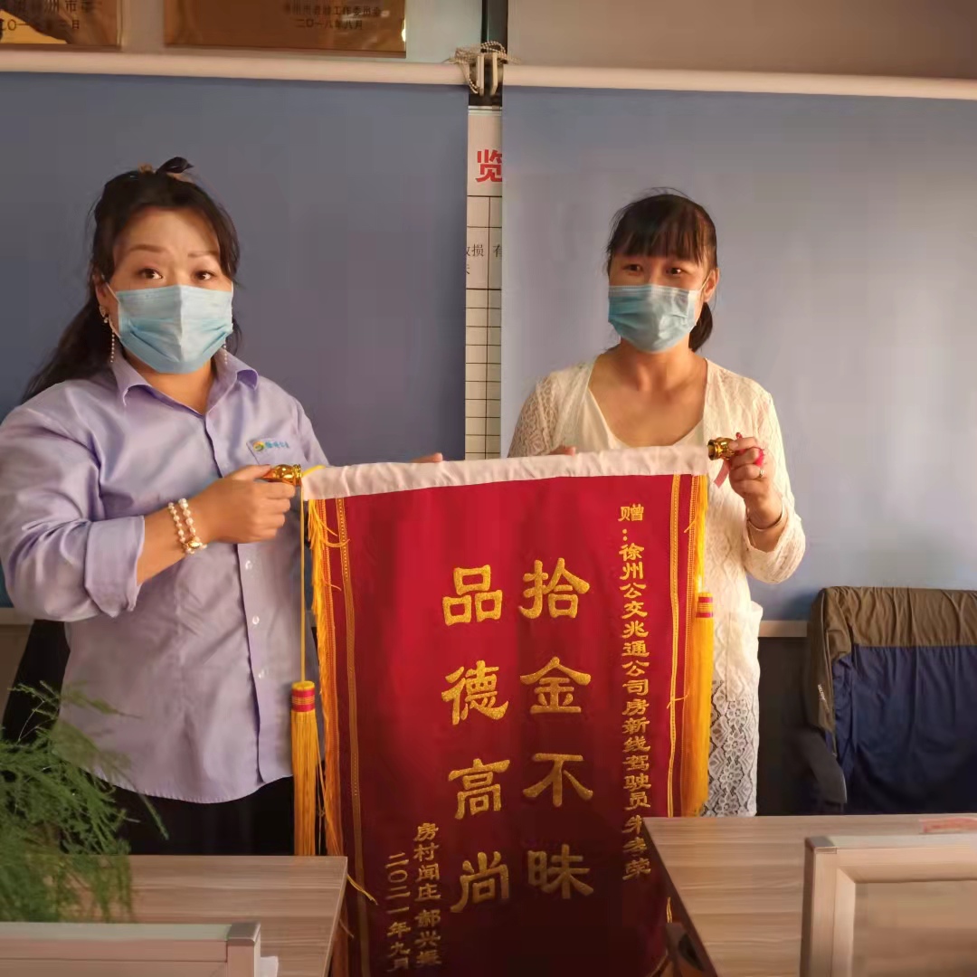 郝女士乘坐房村新區(qū)的車輛回家過(guò)節(jié),不小心將錢包丟在了車內(nèi)。駕駛員朱孝榮收班后,清理車輛衛(wèi)生時(shí),在座位上發(fā)現(xiàn)了錢包,內(nèi)有現(xiàn)金、身份證、醫(yī)??ǖ茸C件。他通過(guò)錢包里的信息聯(lián)系上失主,交還了錢包。郝女士非常感激,專門送來(lái)錦旗,感謝駕駛員的拾金不昧。
