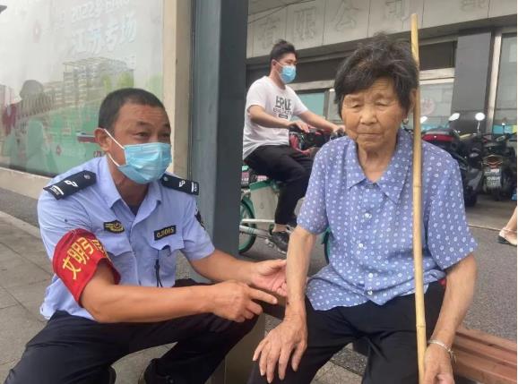 8月20日上午9時(shí)許,二院站臺(tái)的督導(dǎo)員王軍發(fā)現(xiàn)一名老人拄著一根竹竿在站臺(tái)附近徘徊,王軍覺察異常后上前詢問,發(fā)現(xiàn)老人精神狀態(tài)欠佳且身上有多出淤青擦傷,隨即把老人攙扶到座椅上休息。王軍嘗試詢問老人情況,但老人說不出自己的名字,一直神志不清地說著自己家住沛縣,來找老母親等沒有邏輯的話語,老人身上沒有通訊設(shè)備,也沒有任何聯(lián)系方式。