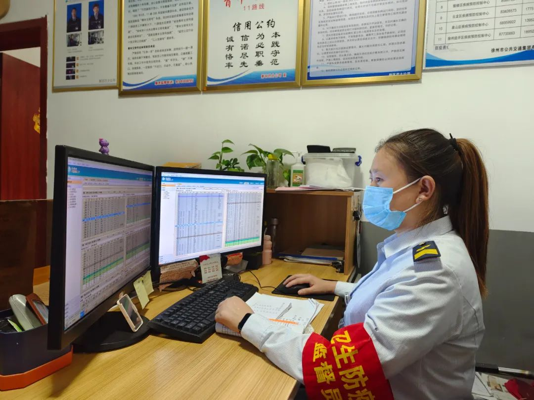 天還未亮,19路調(diào)度室里燈火通明,調(diào)度員黃靜已經(jīng)打開(kāi)電腦開(kāi)始了一天的工作,駕駛員陸續(xù)到達(dá),車(chē)隊(duì)運(yùn)管員鄒晶一邊叮囑著駕駛員安全注意事項(xiàng),一邊對(duì)其進(jìn)行酒精測(cè)試,一切井井有條,忙而不亂。首班車(chē)駕駛員紀(jì)彤仔細(xì)檢查車(chē)況、消毒、通風(fēng)等情況,車(chē)上、車(chē)下絲毫不敢疏忽,做好出車(chē)前的準(zhǔn)備。