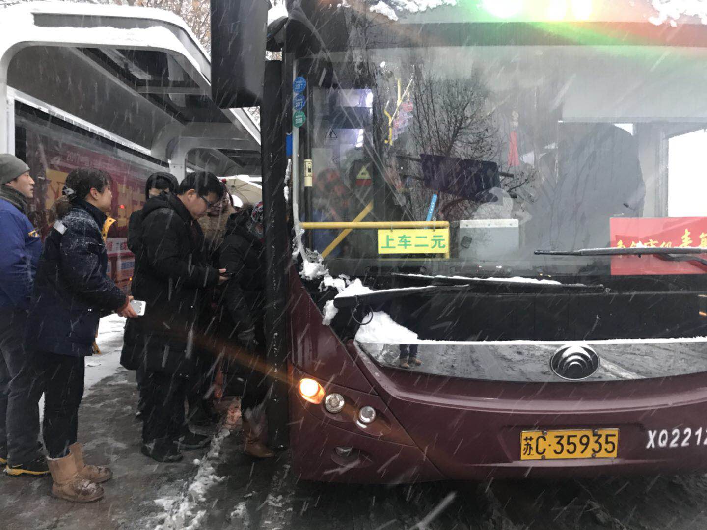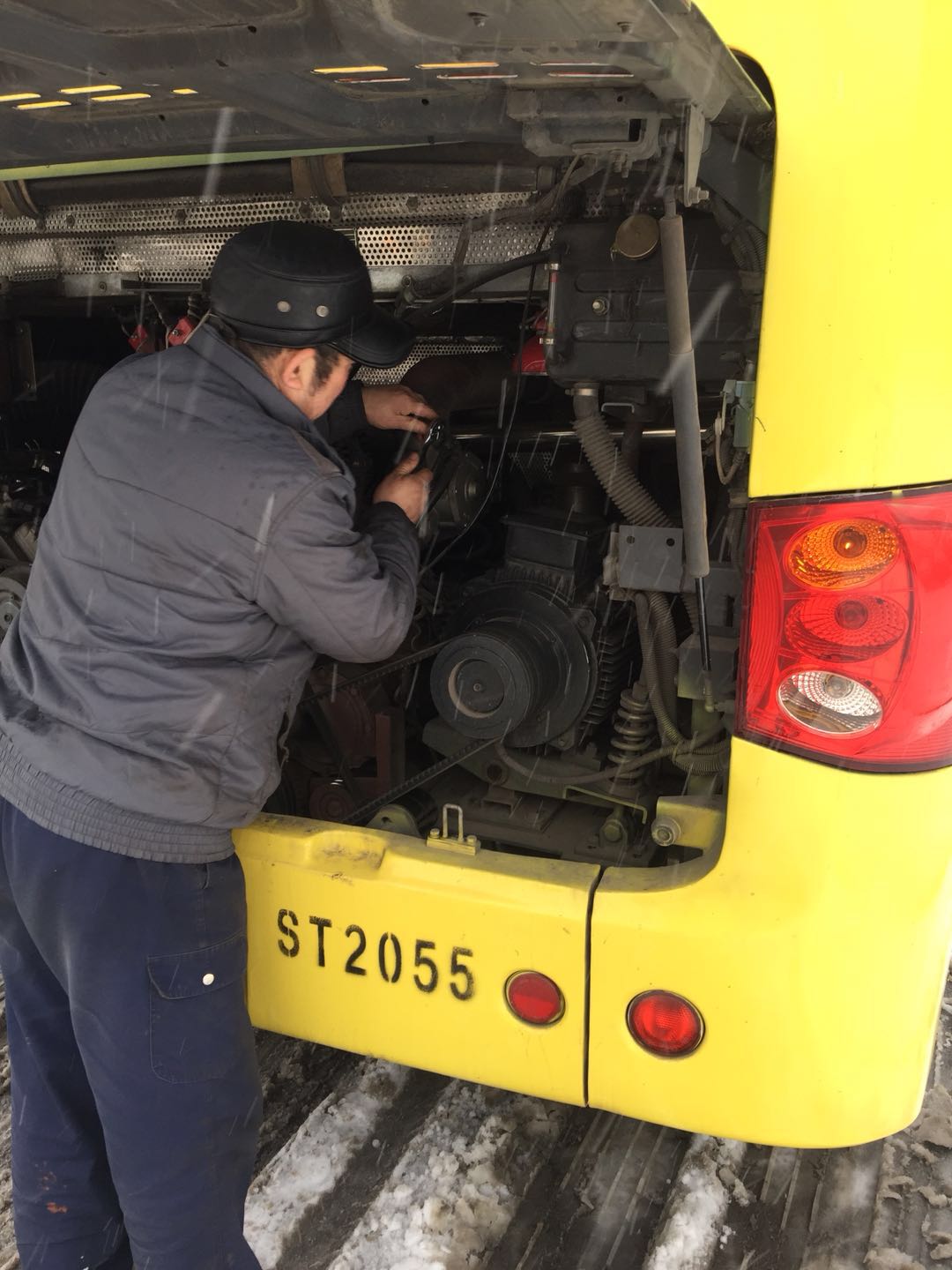 為保證冰雪嚴寒天氣公交車運力正常,公司提前對2300余輛公交車進行了安全性能的全面普查及換季保養(yǎng)作業(yè)項目,進一步加強車輛的日常維護及“三檢”,嚴格執(zhí)行維保規(guī)范,確保車輛設備的防凍液冰點值不低于-15℃,并提前更換了-10號柴油,防止燃氣車輛冰堵。修理人員冒著風雪,手凍得通紅仍堅持在現(xiàn)場搶修車輛;智能調(diào)度平臺利用3G視頻實時監(jiān)控線路運營情況,利用車載語音不斷播放安全提示,做好雪天行車安排;公交出租450輛出租車全部出車……4日晚,市區(qū)雪深已達375px,氣溫-7℃。大雪造成高鐵晚點6小時,10路線立即增派7輛加班車增加24個班次,直至5日凌晨4:07最后一班車發(fā)車,堅決不滯留一名乘客,全力保障了雪天市民的安全出行。