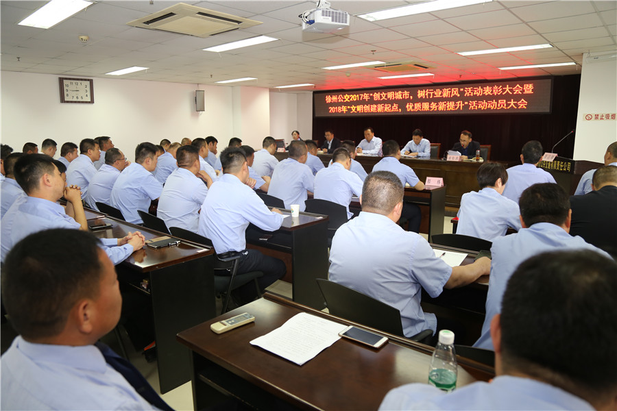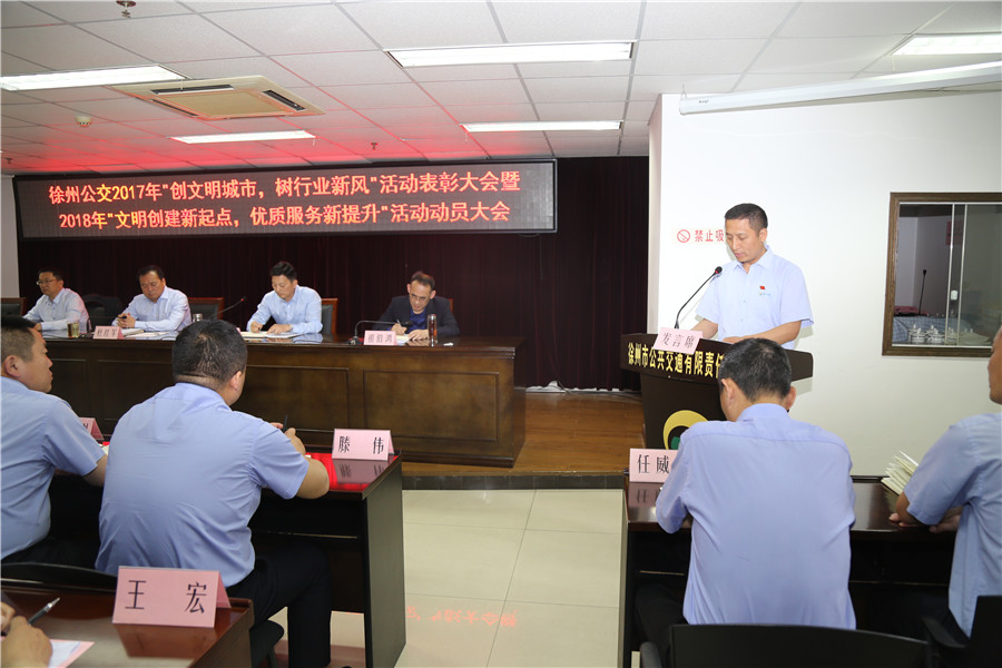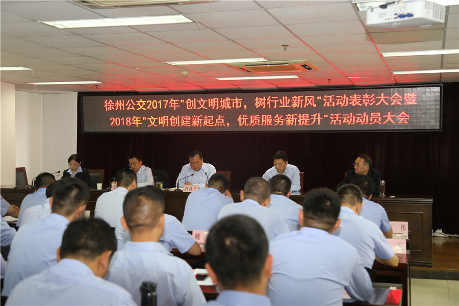最后,公司董事長、總經(jīng)理杜紅軍作重要講話,對2017年文明城市創(chuàng)建工作進行了總結(jié),對公交廣大干部員工在創(chuàng)建中的辛勤付出和取得的成績給予了充分肯定。同時,分析了目前的創(chuàng)建形勢,提出了新時期工作要求。他強調(diào):各單位要不斷總結(jié)創(chuàng)建經(jīng)驗,用制度鞏固好已有的創(chuàng)建成果;要營造良好氛圍,用核心價值觀帶動行業(yè)文明新風;要深化創(chuàng)建內(nèi)涵,用優(yōu)質(zhì)服務打造公交文明新亮點。要以全國文明城市創(chuàng)建成功為契機,以常態(tài)長效為目標,努力打造溫馨公交、安全公交、便捷公交、智慧公交,以高質(zhì)量服務,實現(xiàn)群眾滿意;以高標準要求,優(yōu)化公交形象,在流動的車廂傳播精神文明,譜寫出新時期公交行業(yè)文明創(chuàng)建的動人樂章,為加快建設“強富美高”新徐州交出公交人的滿意答卷!