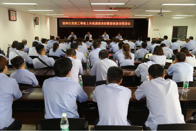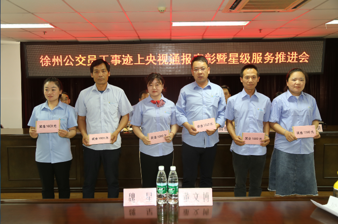 5月30日下午,公司隆重召開了“徐州公交員工事跡上央視通報(bào)表彰暨星級(jí)服務(wù)工作推進(jìn)會(huì)”,對(duì)近30多天來受到市以上新聞媒體,包括被央視宣傳報(bào)道的救助病人、照顧老人、見義勇為、優(yōu)質(zhì)服務(wù)的優(yōu)秀員工進(jìn)行了集中表彰獎(jiǎng)勵(lì),公司董事長、總經(jīng)理杜紅軍,工會(huì)主席竇同銀,調(diào)研員祖伯鴻及各單位分管領(lǐng)導(dǎo)、服務(wù)主管、政工員、先進(jìn)典型等一線員工代表82人參加會(huì)議。